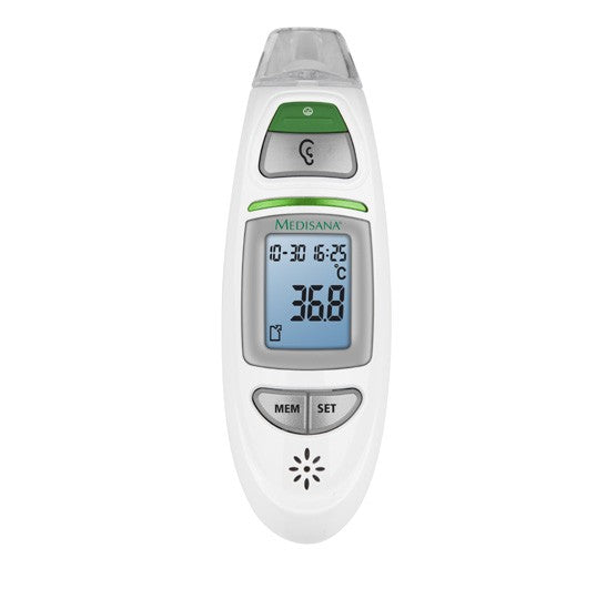 El termómetro por infrarojos Medisana TM A75 ofrece una medición exacta de la temperatura corporal en el oído y en la frente.
