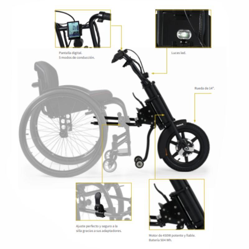 Handbike eléctrica para silla de ruedas fácil de enganchar y desenganchar