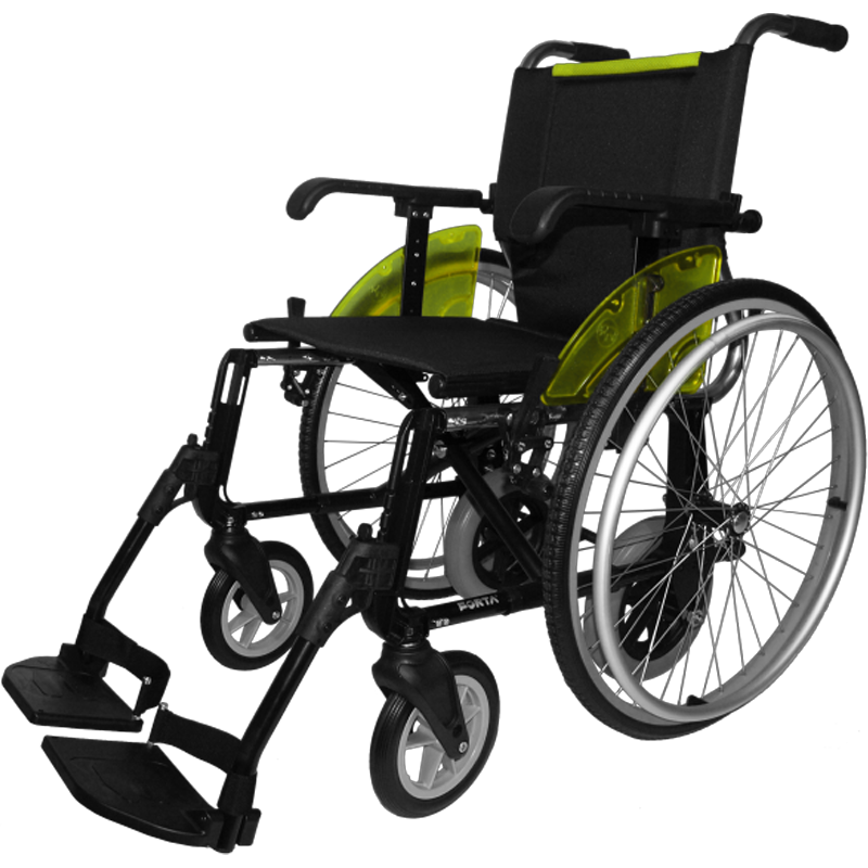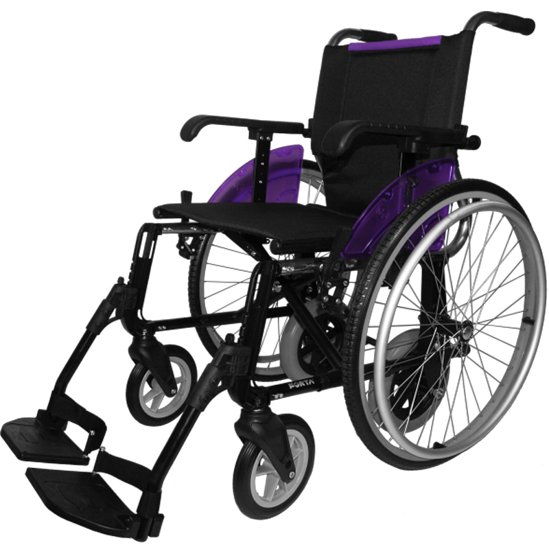 - Ruedas traseras intercambiables de 600 mm y 250 mm que permiten adaptar la silla a espacios reducidos o amplios mejorando la movilidad en interiores y exteriores.